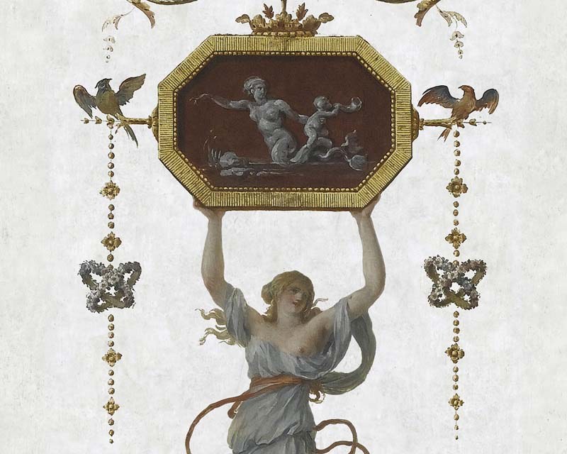 Boudoir de la Reine - Grotesque N°3REFERENCE Boudoir3 Themes: XVIIIth Size : 74 x 19 inch Decorative panel #3 created from the décorative painting of Queen Marie-Antoinette's boudoir. Drawing from architect Pierre-Marie Rousseau; Handpainted grotesques by Michel-Hubert Bourgois and Jacques-Louis-François Touzé