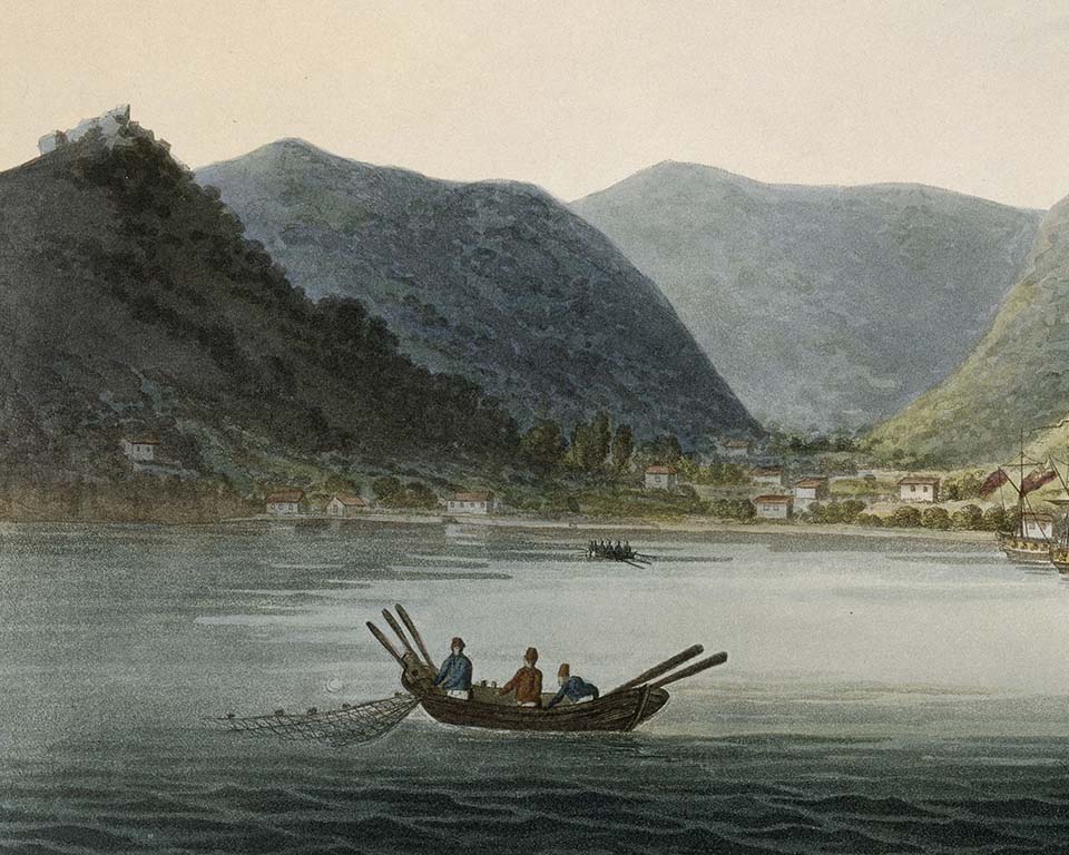 Island of Elba - Wallpaper muralREFERENCE Elbe Themes: Exotic Size : 67 x 107 inches Scenic wallpaper mural made from the original artwork of Francis Jukes (1747-1812): "View of the West Side of Porto Ferrajo bay" published in London by Ja. Daniell A view of porto Ferraio bay, in the manner of explorers and travellers at the napoleonic era Size: 67x107 inches(H170x L274cm) - 3 x 36 inches strips Matte nonwoven paper - Made in France