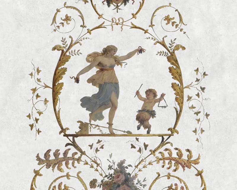 Réalisée à partir de l'ensemble exceptionnel de peintures décoratives du Boudoir de Marie Antoinette, cette série de 8 panneaux décoratifs offre des possibilités de compositions murales classiques.