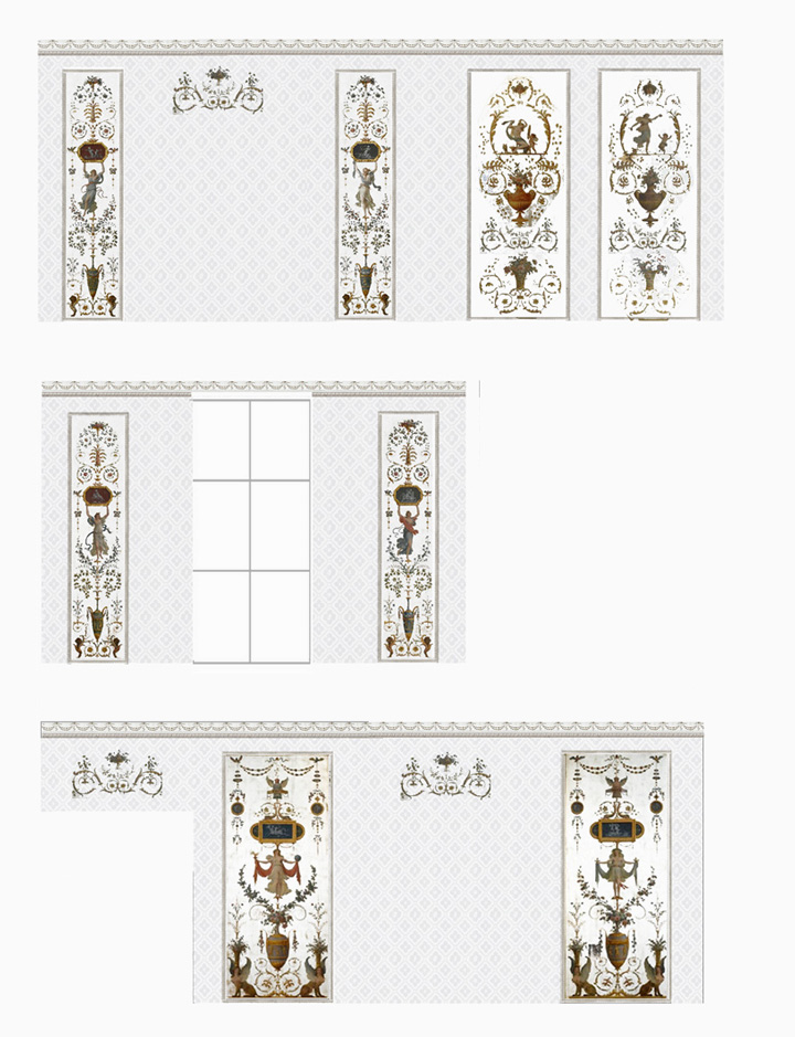 Série de 8 arabesques réalisés à partir des peintures décoratives du Chateau de Fontainebleau.