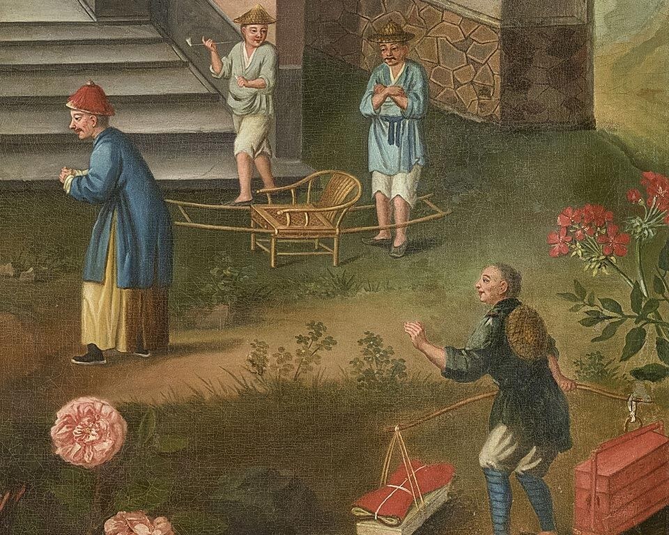 Cabinet Chinois N°4 - Panneau décoratifRéférence CABINET_CHINOIS_4 Themes : XVIIIème Taille : 186 x 61 cm Panneau décoratif en papier peint représentant une scène chinoise réalisé à partir d'un cycle de toiles peintes par La Roche, Frédou, Prévost et Coqueret, peintres du cabinet du roi, avec la collaboration de la reine Marie Leszcynska et d'Etienne Jeaurat au début de l'été 1761. Ils étaient placés dans le second cabinet, dit des Chinois, de Marie Leszcynska, à Versailles. Ce panneau représente un chinois s'inclinant devant un grand seigneur après être descendu de sa chaise à porteurs. Au premier plan des fleurs et plantes luxuriantes font écho aux arbres de l'arrière plan. La finesse du trait et la quanlité de composition font de ce panneau un superbe élément décoratif. Ce panneau fait partie d'un groupe de 4 panneaux, tous vendus séparément. Vous pouvez en installer un seul ou composer une décoration de plusieurs panneaux. Taille : H 186 cm x L 61 cm - livré en 1 lé de 61 cm de largeur Image originale: (C) RMN-Grand Palais (Château de Versailles) / Christophe Fouin. |